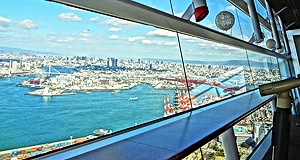 コスモタワーにある大阪府咲州庁舎展望台は、大阪ベイエリアの壮大なパノラマビューを見下ろせる絶景スポットです。シースルーエレベーターや全長42mのロングエレベーターなどがあり、アミューズメント感覚で楽しむことができます。