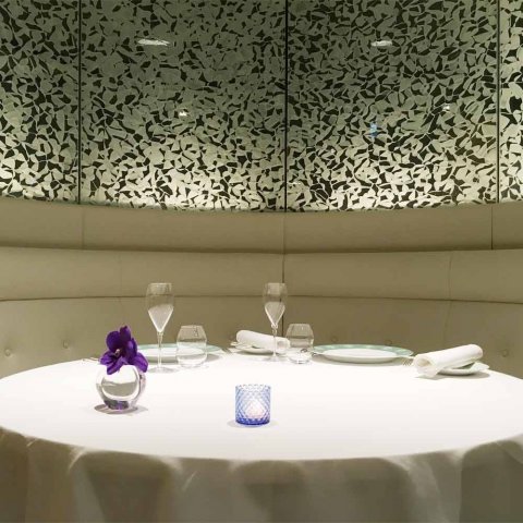 「メゾン タテル ヨシノ」は、落ち着いたブルーのエントランスを抜けると、白で統一されたラグジュアリーなフロアが広がる人気のフランス料理レストランです。こちらのアニバーサリーランチは、フレンチの巨匠と言われるシェフ吉野建が監修した本格フランス料理を堪能できる食事が用意されます。