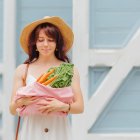一昔前は、年配の主婦が持つというイメージが強かったエコバッグも、最近では持ち歩く若い女性が増えています。仕事帰りのショッピングにはもちろんのこと、お弁当やストールを入れたりするのにも便利に使えるため、ひとつは持っていると嬉しいアイテムです。
