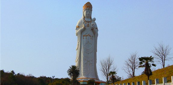 小豆島大観音は、小豆島のパワースポットともいわれています。足元には二人の誓いを書いて祈願する誓いの南京錠があり、カップルやご夫婦に人気があります。