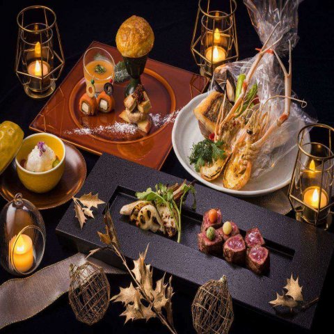 クリスマスには前菜をはじめ、オマール海老茶碗蒸しや黒毛和牛低温焼、お寿司の盛り合わせなど贅を尽くした特別なディナーが提供されます。