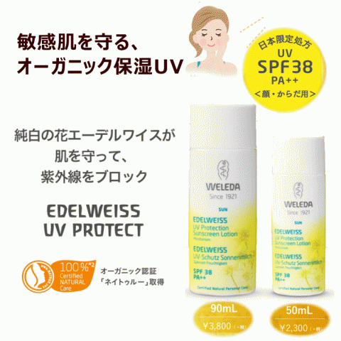 ヴェレダが扱う無添加の日焼け止めは、紫外線吸収剤不使用で顔や体に優しいだけでなく、石鹸でするんと落ちるため家族みんなで快適に使えます。