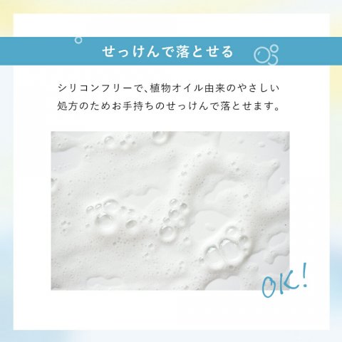 SPF50+、PA++++の高い数値がありながら、石鹸で洗い落とすことができるのもおすすめのポイントです。