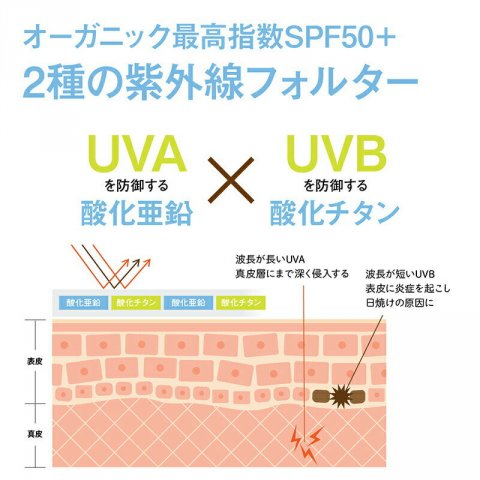 肌に潤いを与える植物エキスを含んだ日焼け止めは、日本で作られています。紫外線吸収剤不使用の無添加処方で、石鹸で落ちるのが特徴です。