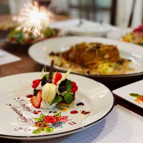 イル フューメでは、良質な素材の味が生きたトスカーナ料理を味わうことができます。全8品の女子会プランではメッセージ入りのデザートを注文できるため、誕生日のサプライズ演出にも最適です。
