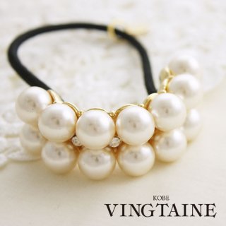 KOBE VINGTAINEのビジューパールヘアゴムは、大きめのパールとさりげなく埋め込まれたラインストーンが女性らしさを引き出すアイテムです。エレガントなデザインで、女性の魅力を高めます。