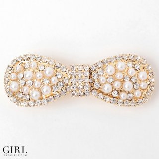 小さめのリボンにパールとラインストーンをあしらった可愛らしいバレッタは、ヘアアレンジのワンポイントにおすすめです。普段使いにもぴったりで、ちょっとしたプレゼントにも喜ばれます。