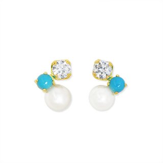 他のパールピアスとは一味違った、ターコイズとパール、キュービックの3つの組み合わせが女性の心を魅了します。ころっとした艶のあるパールと鮮やかな色のターコイズに光に輝くキュービックは相性抜群です。