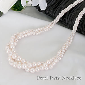 こちらのアイテムは、サイズの違うパールがツイストした、独特なデザインが特徴のネックレスです。一重のパールネックレスよりも存在感があり、上品な雰囲気を演出してくれます。