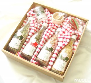こちらのパスタソルトギフトセットは、4種類のソルトとスパイス、キッチンクロスなどを詰め込んだ豪華なアイテムです。数種類の味が入っていて、食べ比べできるのが楽しいと話題になっています。