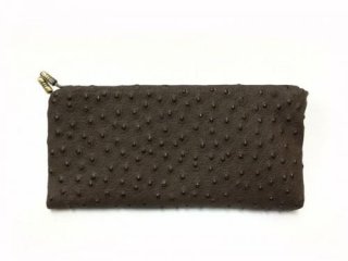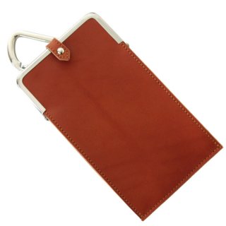 オーストリッチレザー(合皮)のシンプルなスマホケースがこちらの天溝です。天溝というのは口金の名称で、上部の溝により生地が口金自体を包みこみ、表から口金が見えないのが特徴で、洗練された印象を与えます。
