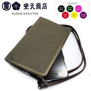 こちらは、京都秀和がま口製作所の職人がひとつひとつ手作りしている、あやの小路の帆布スマホケースです。スマホは、毎日頻繁に出し入れを行うものなので、丈夫な帆布を使って作られています。