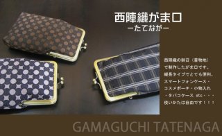 熟練の職人の手で織り上げられた、西陣織絹100%の着物生地が素敵です。アンティークゴールドの口金が西陣織の生地とよく合い、レトロな雰囲気に仕上がっています。