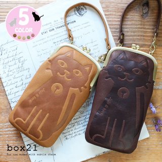 こちらは猫好きにはたまらない、2匹の猫がモチーフとなったジュジュアンドベックのがま口スマホケースです。しっかりとした牛革素材で、スマホがすっぽりと収まるゆとりのあるサイズはとても使いやすくて喜ばれます。
