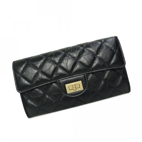 シャネルの代表作と言われているバッグ「2.55」と共通するデザインをもつこちらの長財布は、年齢を選ばない上品な見た目で人気です。