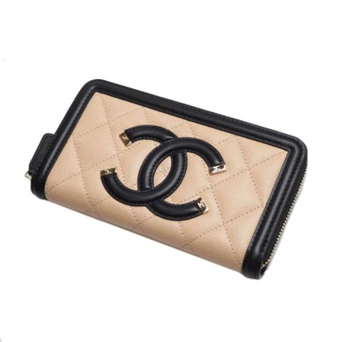 こちらは、シャネルの人気ライン CCフリグリのラウンドファスナータイプのレディース長財布です。