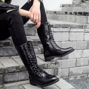 ミリタリーブーツにも使われる編み上げは、ブーツ全体のデザインによってはエレガントな雰囲気にもなります。ここからは、セクシーかつ知的なイメージを演出してくれるおしゃれな編み上げロングブーツをご紹介します。