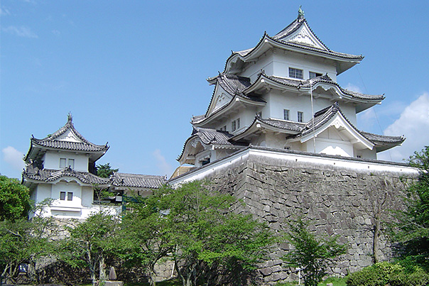 「伊賀上野城」は、白い外観のお城であることから別名白鳳城とも呼ばれています。日本でも有数の高さを誇る30mの石垣は見どころのひとつです。