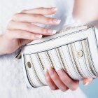 また使い勝手も大変良く、アコーディオン形式の収納部分により小銭の取り出しがスムーズです。さらに金のバックルが付いた外ポケット部分には、さっと取り出したいチケットや鍵も入れることができます。