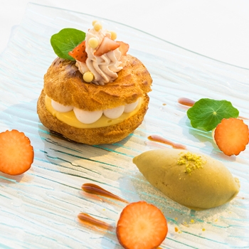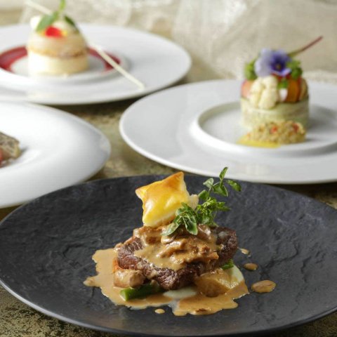 フレンチレストラン「ダンゼロ」では、華やかな牛ステーキをメインに据えた美食ランチコースが提供されています。和のエッセンスを取り入れ、日本人の味覚に合うよう仕立てられた料理は、優しい味で食べやすいと好評です。
