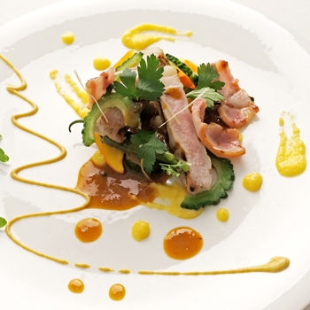 フレンチレストラン「ミクニ」では、お得な食前酒付きの女子会用ランチコースが用意されています。素材の魅力を引き出す技巧はもちろん、盛り付けもとても芸術的で、女性のときめきを誘うと評判です。