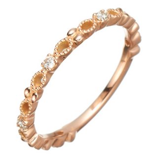 また、10Kピンクゴールドは18Kに比べて硬く丈夫なため、華奢なリングに多く使われています。美しいピンクゴールドと、等間隔に埋め込まれたダイヤモンドが、上品さを引き出してくれます。