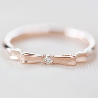 リボンのセンターには、一粒ダイヤモンドが爪留めされており、ワンランク上の大人の余裕を感じさせてくれます。また、10Kピンクゴールドと18Kピンクゴールドから好きな素材を選ぶことが可能です。
