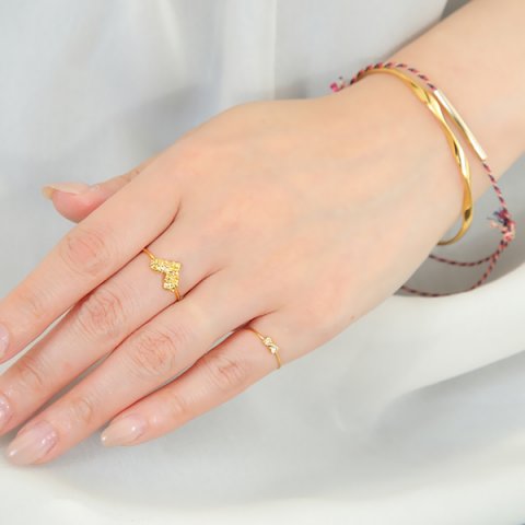 透かし模様が入っているので、肌に馴染みやすいのも人気の理由のひとつです。軽やかな印象のピンキーリングは、他のリングとの重ね着けにも向いています。