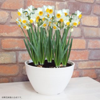 高さ約40cmのずっしりとした鉢に5つの球根が植えられており、16本から20本の花芽に付くたくさんの花を満喫してもらえます。また、白色の可愛い鉢に入っているので、光の当たる窓際などに置くと部屋の雰囲気を明るくできると人気です。