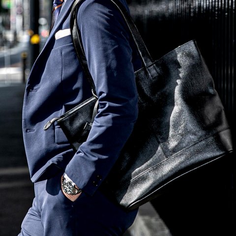 スーツにも私服にも好相性のシンプルなトートバッグ