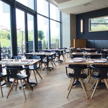 グランドハイアット東京のオークドアは、ステーキハウスならではのこだわりの肉料理が食べられます。開放的でスタイリッシュな店内は、優雅なひとときを過ごすのにぴったりです。
