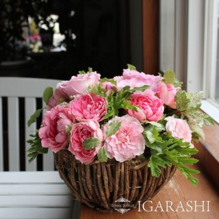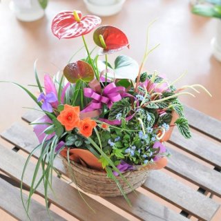 複数の鉢をひとつの籠等にまとめた寄せ鉢は、花束やアレンジメントよりも長く楽しめるのが特徴です。「季節の寄せ鉢シリーズ2」は、シーズンごとに選りすぐりの花を集めていて、艶やかな雰囲気で高い人気があります。