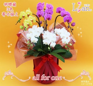 大輪中輪胡蝶蘭 3色寄せ植え5本立ち all for one
