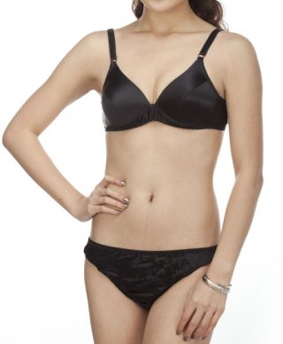 アブソール 光沢サテン黒レース ブラ+ショーツセット