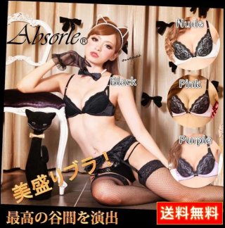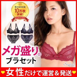 Absorle メガ盛りブラ グラマラスな総レースデザイン ブラ+ショーツセット