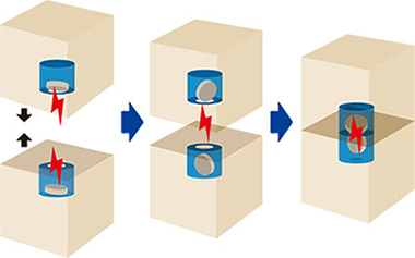 そこで、ポリカーボネートという耐久性に優れたプラスチックの容器に磁石を封入し、積み木に埋め込みました。