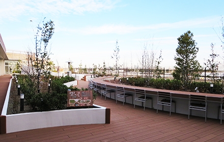 イオンモール幕張新都心内「ファミリーモール」にあるスカイパークは、広々とした約1,700平方メートルの屋上庭園です。昼間はたくさんの緑と子どもたちの賑やかな笑い声が、夜にはムーディーな街灯りと海風が感じられます。