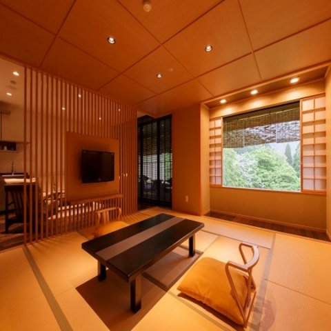 「志だて」は、落ち着いた大人の時間を過ごせるラグジュアリーなホテルです。客室すべてに源泉かけ流し温泉の露天風呂がある、贅沢な造りに魅了されます。