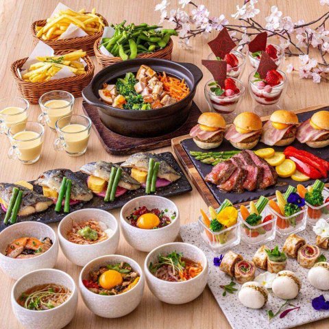 こちらでの女子会の際にぜひ利用したいのが、スパークリング含むドリンク100種以上の2.5時間飲み放題付きの女性限定コースです。季節食材の前菜や魚介と肉料理、デザートが付いたイタリアン全7皿を、気の置けない仲間とわいわい楽しんでください。