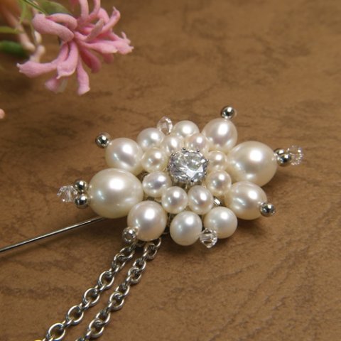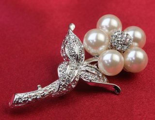 切り花 スワロフスキーとパールブローチ