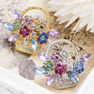 スワロフスキー付きブーケバッグ型ピンブローチ