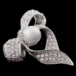 こちらは、スワロフスキーが全体に飾られた煌びやかなブローチです。高級感のあるデザインと、やわらかく美しいリボンの曲線が、相手の女性の魅力を引き立てます。