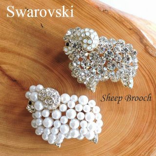 こちらは、スワロフスキーエレメントがふんだんに使われた、可愛い羊がモチーフのブローチです。パールやシルバー、ホワイトオパールなど、素材によって羊のもこもこ感の表現の違いを楽しむことができます。