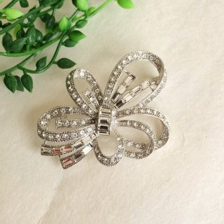 スワロフスキーリボンのモチーフブローチ