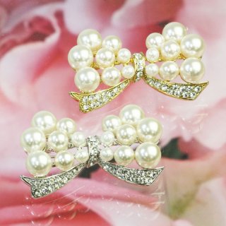 スワロフスキーとパールのリボンブローチ