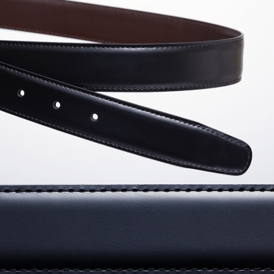1本は必ず持っておきたい定番の黒ベルト。適度な光沢とハリがあり、高級感も漂っています。