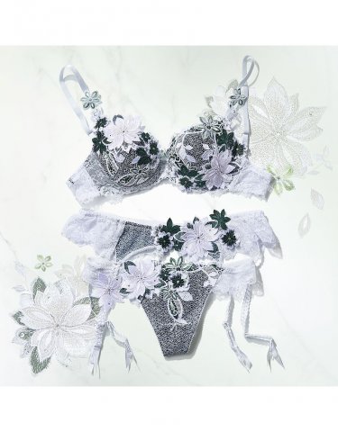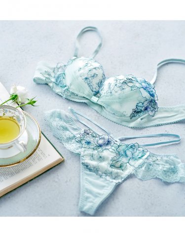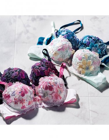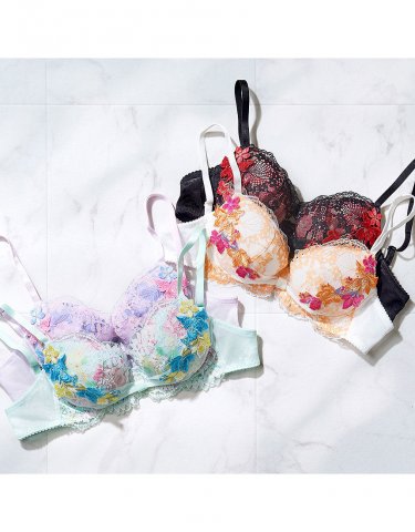 風に乗って舞う花々がレースで表現された、かわいらしく透明感のあるランジェリーが人気を呼んでいます。