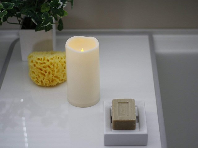 電池式のものは、ろうそくと違って火を使わないので、窓のないバスルームでも換気の心配なく使えます。