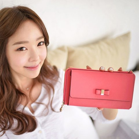 ショルダーストラップ付きのリボン財布は、バッグから出してそのまま持ち歩くこともできる便利なアイテムです。財布とポシェットの2WAYで使えるものが多く、収納力抜群で実用的な点が注目を集めています。
