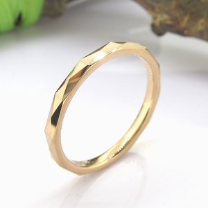 高級感あふれるタングステンの指輪を贈りたいのであれば、「ダイヤカット ワイドタングステンリング」がおすすめです。指輪表面には端正なダイヤカットが施され、ゴールドカラーも相まって実にゴージャス感にあふれています。